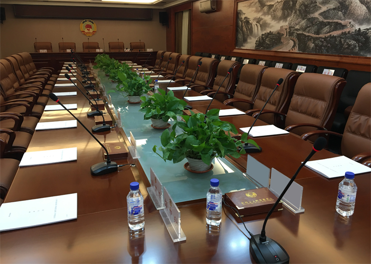 公主嶺政治協商委員會會議室能夠容納50人以上會議使用,會議室搭配四只EKS-081會議音響與KEA-3A功放,配置EPO-802電源時序器,能有效的統一管理和控制各類用電設備,避免了人為的失誤操作、機柜內串聯三臺TS-108集線器實現26臺有線會議麥克風MS400-1同時工作。TS-108是一款十路麥克風集線器,可支持麥克風平衡/非平衡輸入信號輸入,可多機串聯使用,內置48V幻象供電,方便不同麥克風供電需求,內置移頻電路技術,嘯叫抑制能力強,在防止麥克風嘯叫的方案中同時應用得勝FE-224反饋抑制器,使會議安裝更輕松,會議工作更高效進行。系統中MS400-1會議麥克風專為會議室開發,采用觸控式開關麥克風靈敏度高,拾音距離遠、音質清晰,搭配無線麥克風TC-4R,可兼顧移動演講使用。