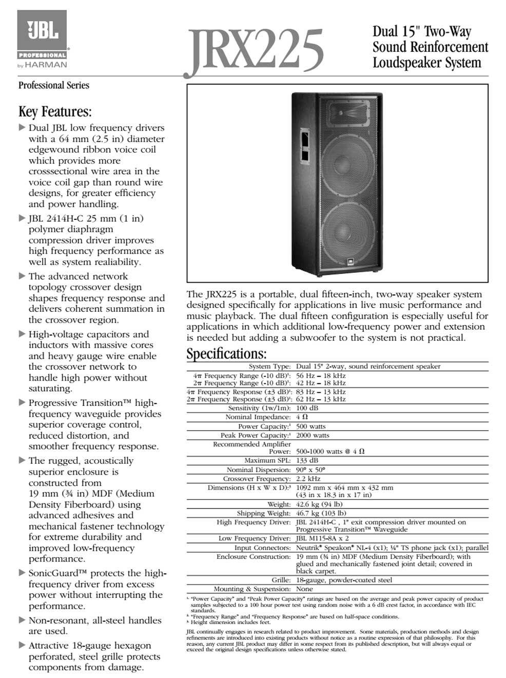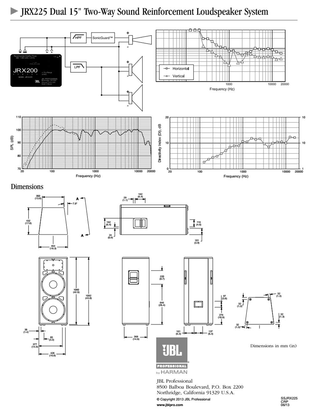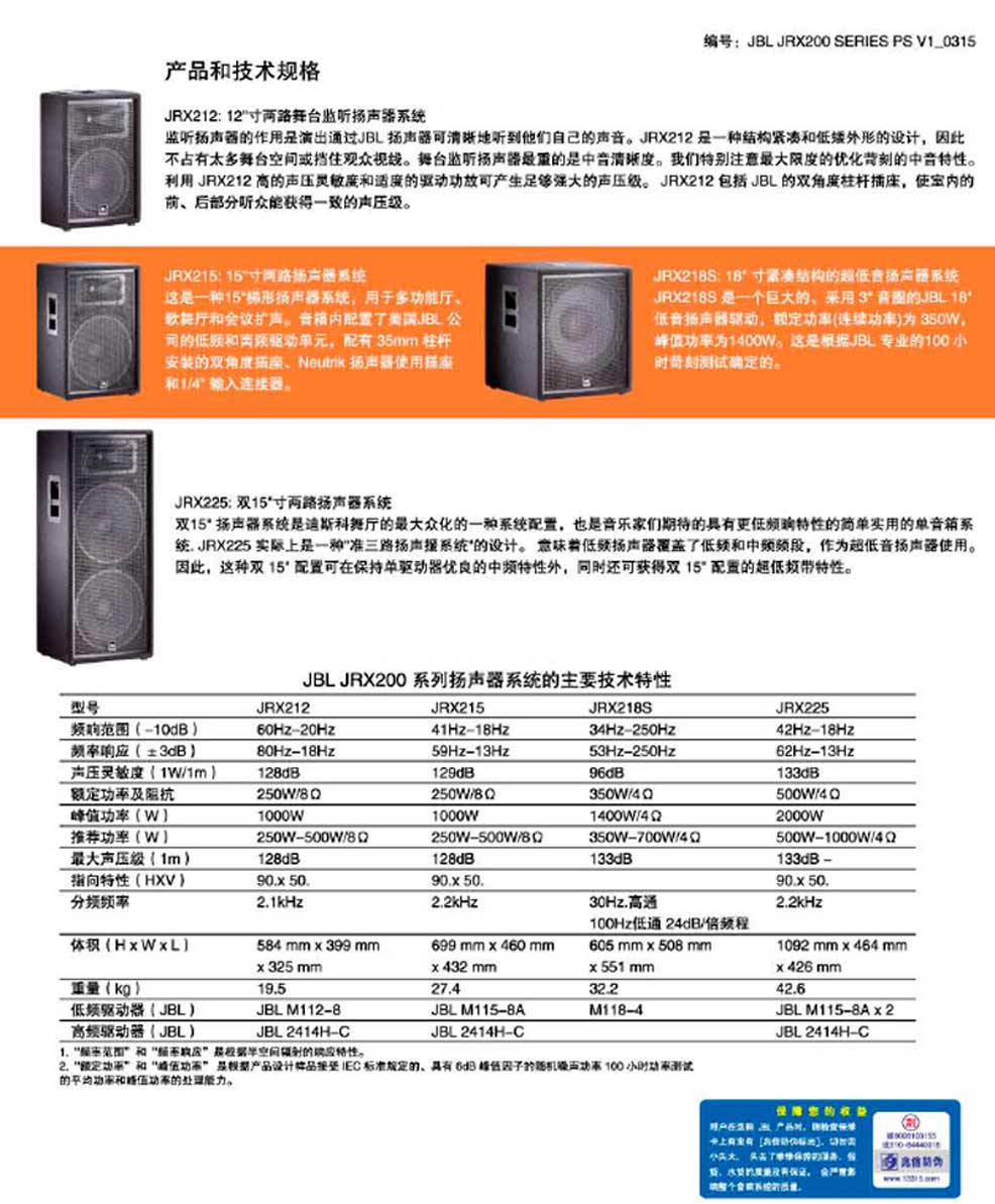 JRX200 使用的低音單元和壓縮驅(qū)動器金部由美國加洲JBL專業(yè)公司制造。