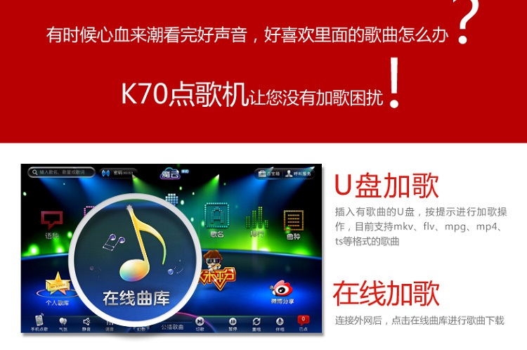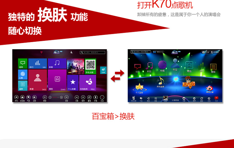>> 移動(dòng)點(diǎn)歌、微博分享、個(gè)性換膚等人性化功能